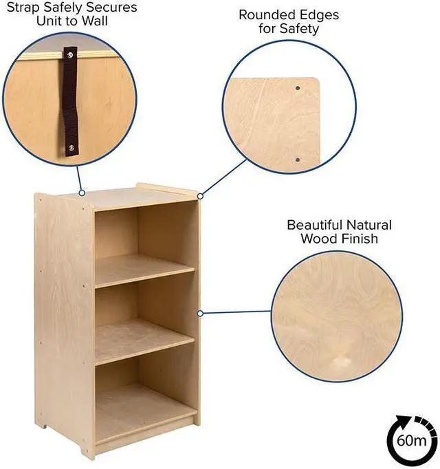Whether children are present in the classroom, playroom, daycare or the pediatrician's waiting room, keeping things organized can be a struggle. This 3 shelf wooden storage cabinet gives you ample space for blocks, books, toys or anything else that needs to be put away at the end of the day while teaching children to be helpful and organized. Durable birch plywood with a natural finish adapts to any home or business decor giving this wooden cube storage organizer unique versatility. Use an alcohol disinfectant containing 70% or higher alcohol concentration followed by a dry cloth to keep this wooden storage organizer spotless and germ free.