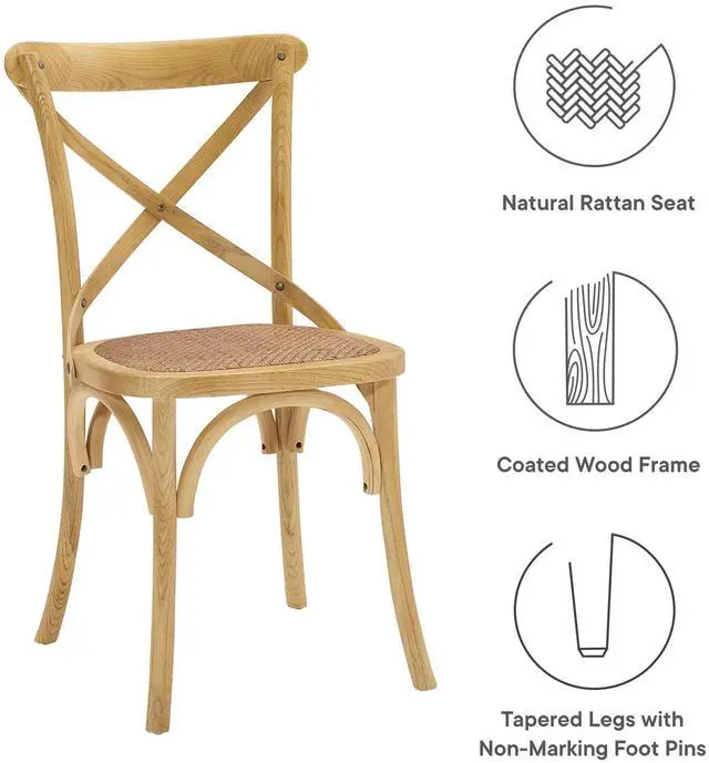 Evoke rustic remembrances as you sip a leisurely tea or hearty breakfast.With an open wooden backrest and tapered legs, the chair provides that country charm without compromising on modernity. The chair comes fully assembled and is a pleasant addition to country cottages, rustic environs, or any urban dweller in search of a respite. Set Includes: One - Gear Dining Side Chair