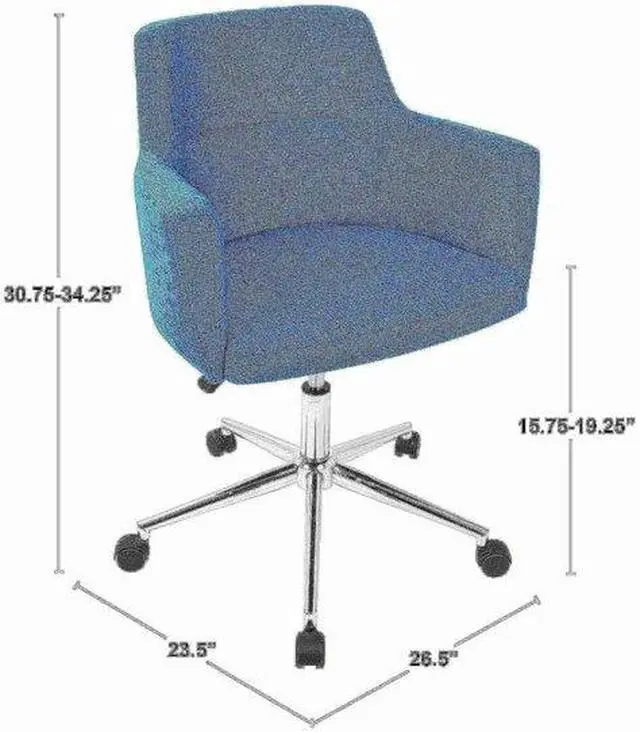 Work in comfort and style in the Andrew Office Chair by LumiSource. Featuring a fabric upholstered padded seat and backrest on a 5-star metal base. Adjustable height, full swivel, and casters means you're a mover and a shaker.