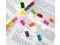 Color:red,orange,yellow,dark green,light green,dark blue,light blue,rose red,(rose red,green,yellow,orange) line,(yellow,rose red, purple, light green) with white dot,(red,yellow, green,blue)with blank column