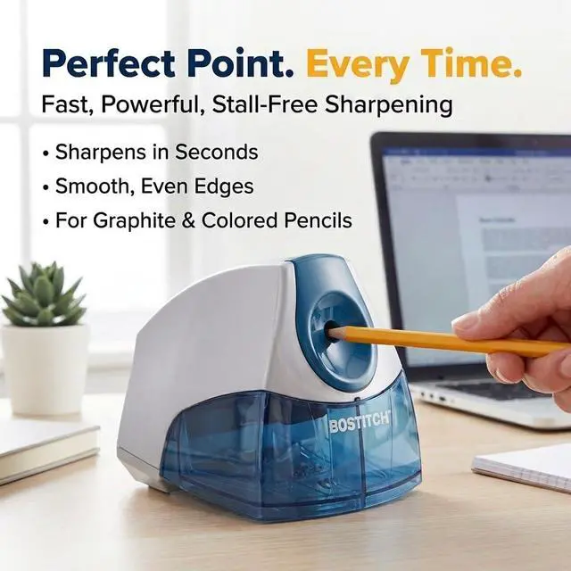Featuring a durable HHC cutter, this sharpener brings precision cutting for 4x longer! Plus, its powerful motor allows for continuous, stall-free operation so you can get the perfect pencil tip, every time.