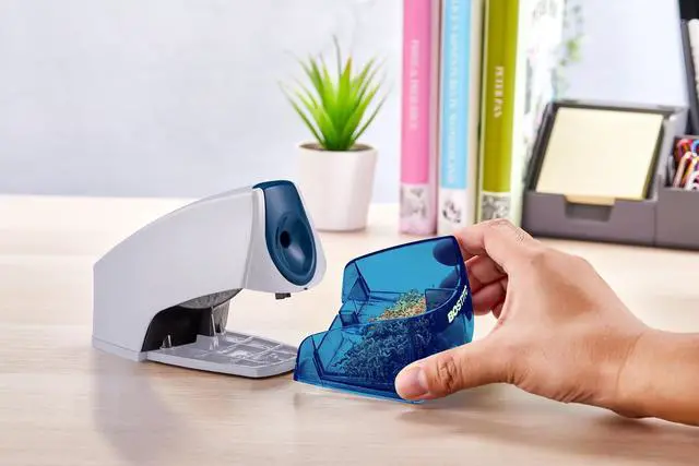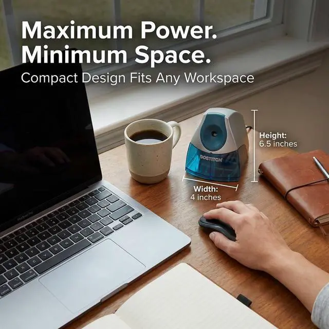Boasting a space-saving design, this compact pencil sharpener has a small footprint that takes up minimal real estate on any workspace.