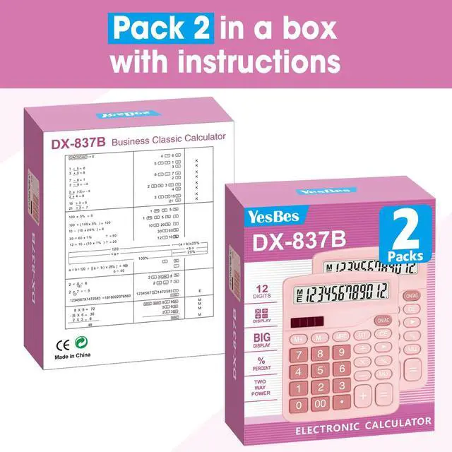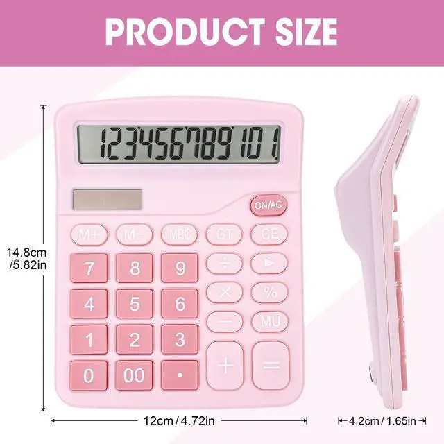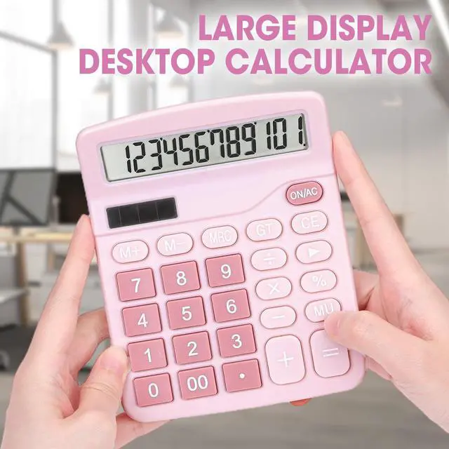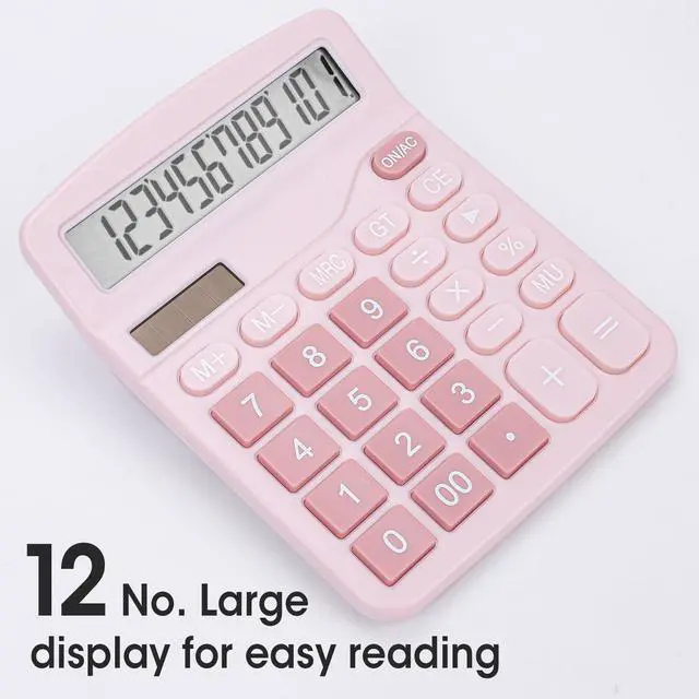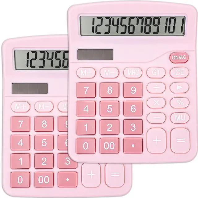 2 Pack Calculator, Pink Calculators Desktop 12 Digits with Large LCD Display and Sensitive Butto, Solar and Battery Dual Power, Desk Calculator