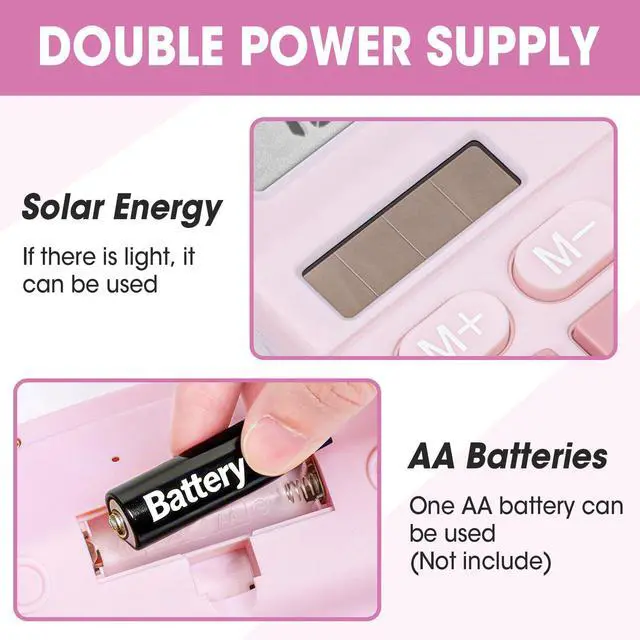 Double Power Supply: desktop calculator is powered by solar energy(works only when it is bright) and batteries(not included). Note: if the calculator is applied under low light, please insert one AA batteries (not included) for continuous and accurate use