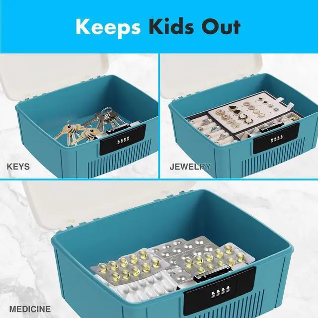 The SereneLife SLSBXN500BL 2-Gallon Locking Storage Bin is designed to provide a secure and organized solution for storing small items. Made from high-quality ABS material, this storage bin is both durable and resistant to scratches and stains. It features a secure combination lock with a user-defined 4-digit passcode, ensuring your belongings are protected. The stackable design helps save space, making it an ideal choice for home, office, or school use. The lift-top hinges provide easy access to the contents, and the heavy-duty impact-resistant construction ensures reliability over time.