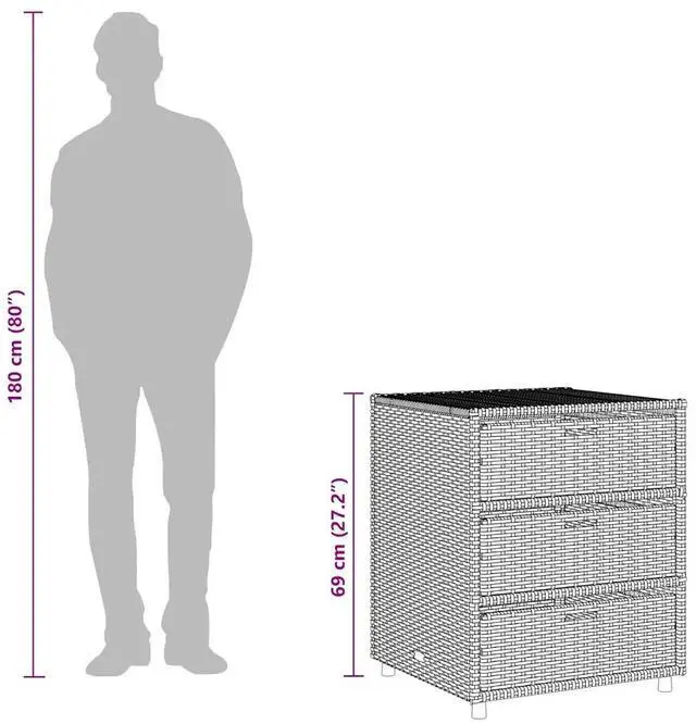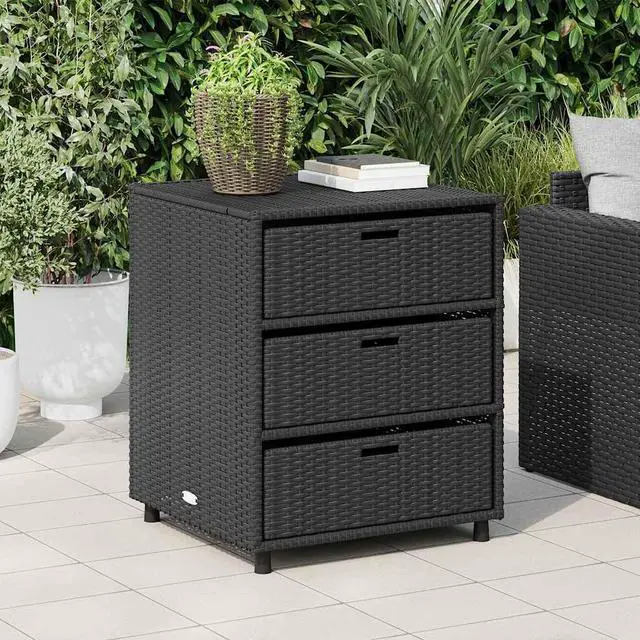 Durable Design: Made from quality poly rattan and powder-coated steel, this cabinet is built to stand the test of time. Weather-resistant, it keeps your garden stuff safe all year round.
