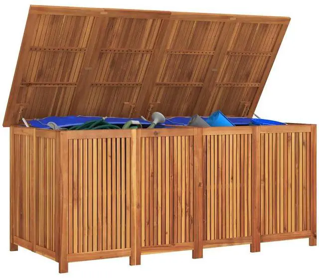 This large garden storage box, made from solid acacia wood, blends style and function perfectly for any outdoor space. Its modern design and oiled finish not only offer plenty of room for your cushions and gardening tools but also give your patio or garden a step up in looks.