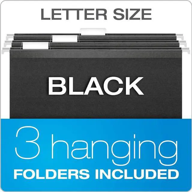 This heavy duty plastic file box includes 3 black reinforced hanging folders with tabs and insertsholds up to 22 letter size 8 1/2 x 11 hanging folders