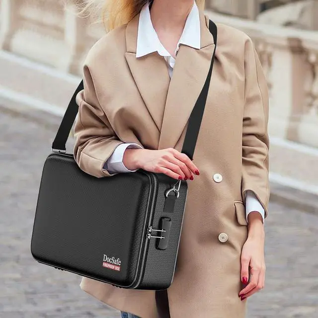 Fireproof Box with Lock: Protect your valuables with the built-in high-quality combination lock (No keys required). Design with a strong handlea detachable shoulder strap for carrying everything you needed easily. The fireproof box is suitable for business, travel, office, school, home storage, of course, giving it as a gift to your family is also a good choice. Fireproof box is both fireproof and water-resistant, ensuring your documents stay protected during fires, floods, or wet weather
