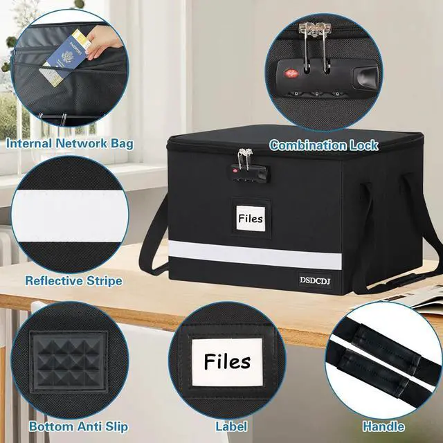Reflective Strip Design: The reflective strip design on the front of the portable file box with handle allows you to immediately find your filing box even at night, protecting irreplaceable documents and valuables from fire. The transparent label slot allows for quick identification of the contents stored inside the box and easy sorting