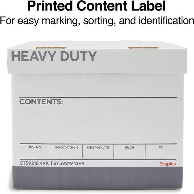 HEAVY-DUTY DESIGN: Double-sided, double-bottom construction provides durability when stacking and for long-term storage while the printed content label enables quick, easy identification when sorting or marking