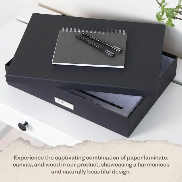 Secure Lid Design: The lid of this sturdy decorative box securely fits on top of the box and will protect your documents and important papers. A metal label holder is included so you can write on the insert paper what is stored inside of the box.