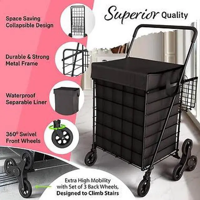 Folding Shopping Cart with Double Baskets Heavy Duty Capacity(BLACK)