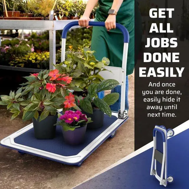 Heavy-Duty Foldable Push Cart Dolly 660 lbs Capacity Flatbed Hand Truck Blue