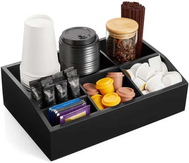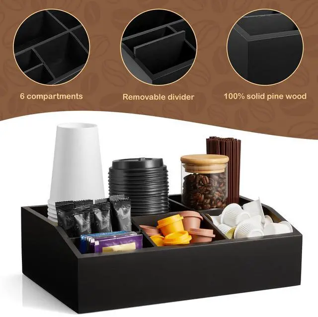 6 - Compartment Coffee Organizer: The well-designed 6 compartments make this coffee organizer perfect for storing mugs, lids and coffee/tea accessories, keeping your coffee table tidy and saving your invaluable early morning time