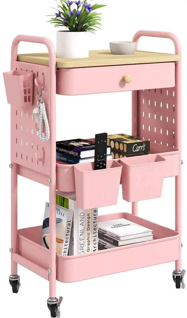 Versatile Utility Cart with Metal Pegboard