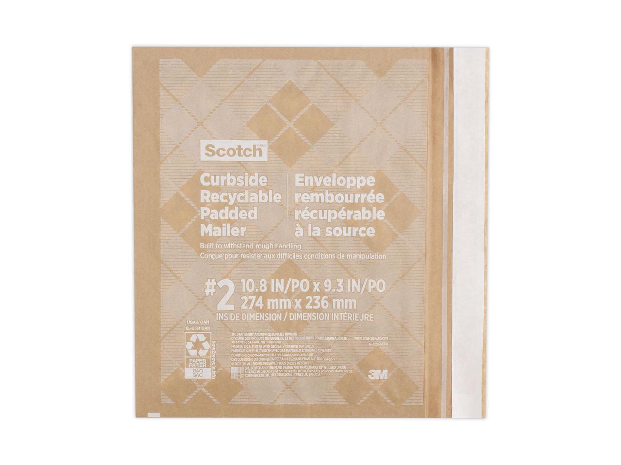 3M Scotch Curbside Recyclable Padded Mailer #2 Natural Kraft 100Ct 7100258635