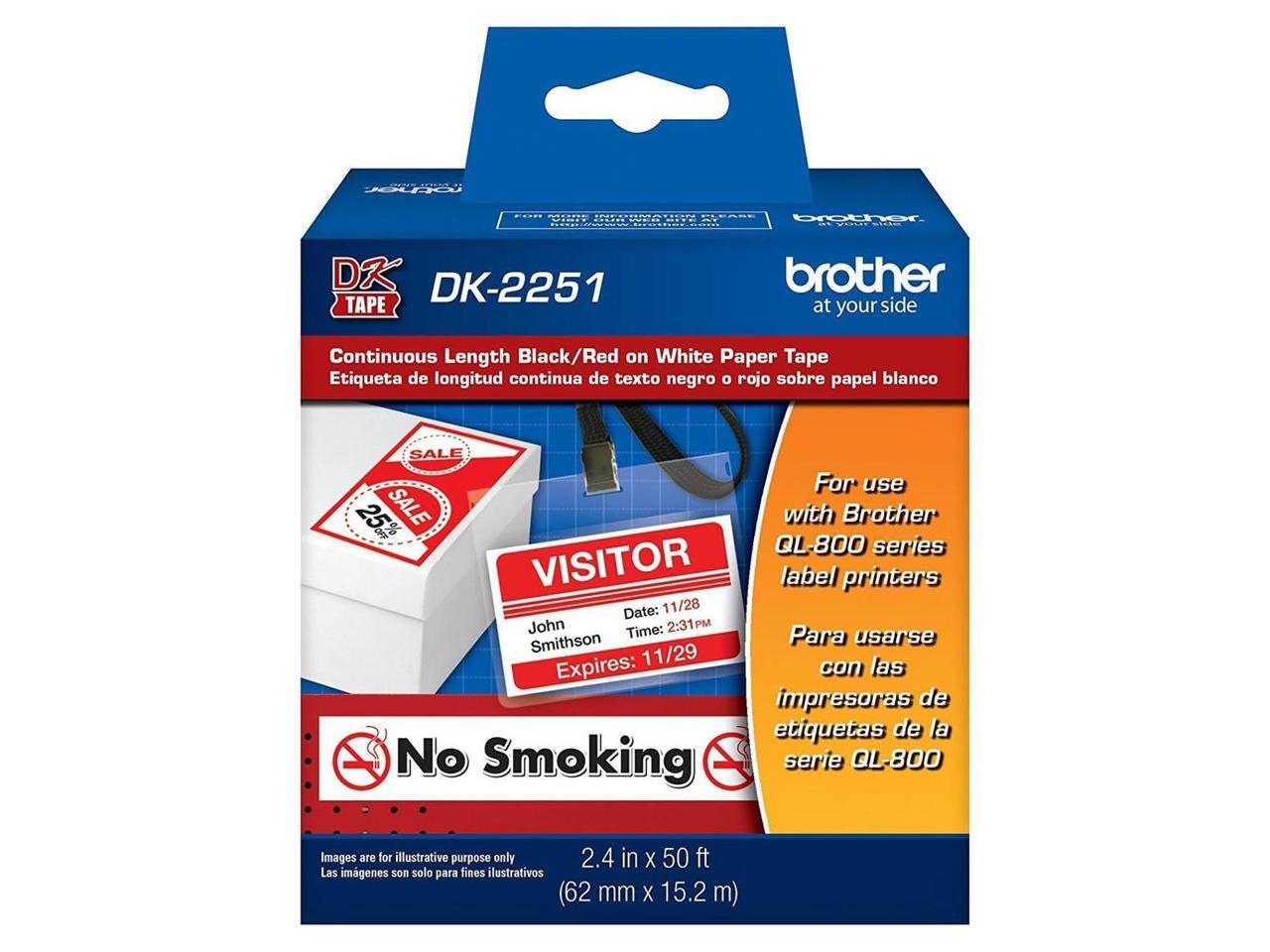 BROTHER DK2251 Black/Red ON WHITE PAPER LABEL