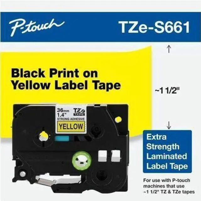 Brother Genuine P-Touch TZe Black Print on Yellow Label Tape (TZeS661), Strong Adhesive Laminated,1-1/2in x 26.2ft