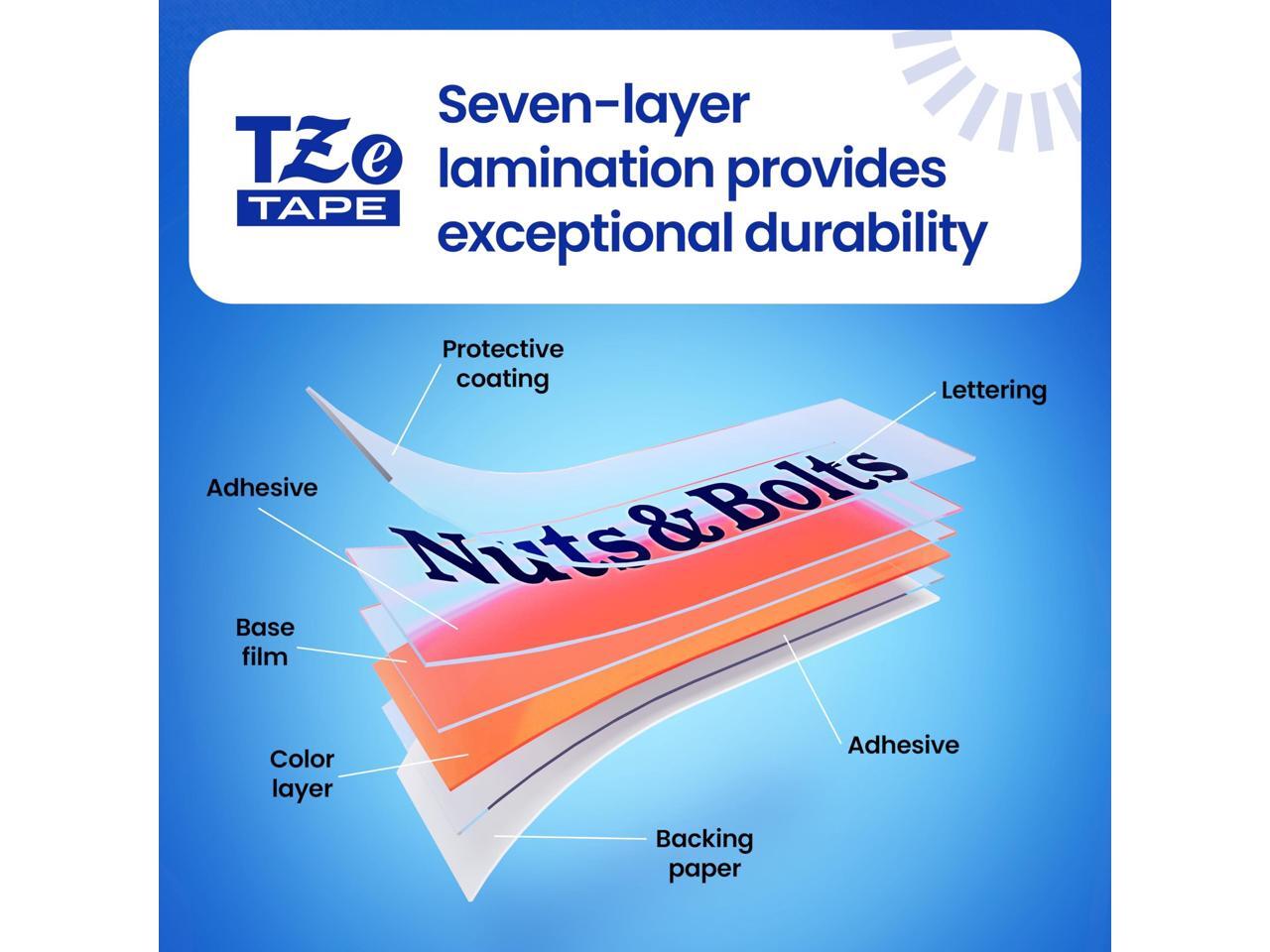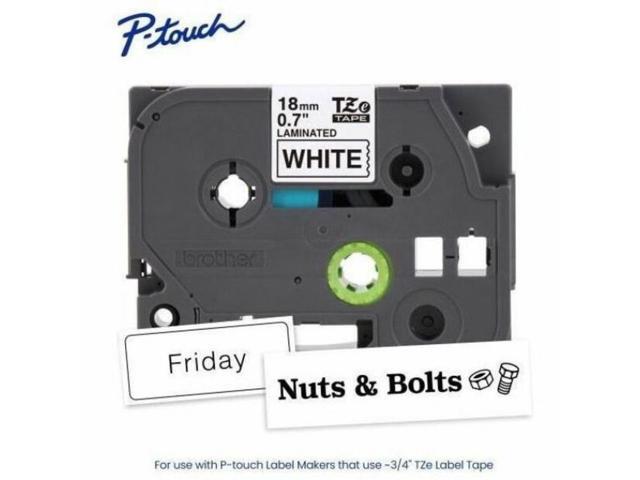 Brother P-touch TZe Laminated Label Tape - - DiameterTape - White - Laminated - Easy to Read, Temperature Resistant, Customizable, Long Lasting, Peeling Resistant, Fade Resistant - 26.20 ft Roll Lengt