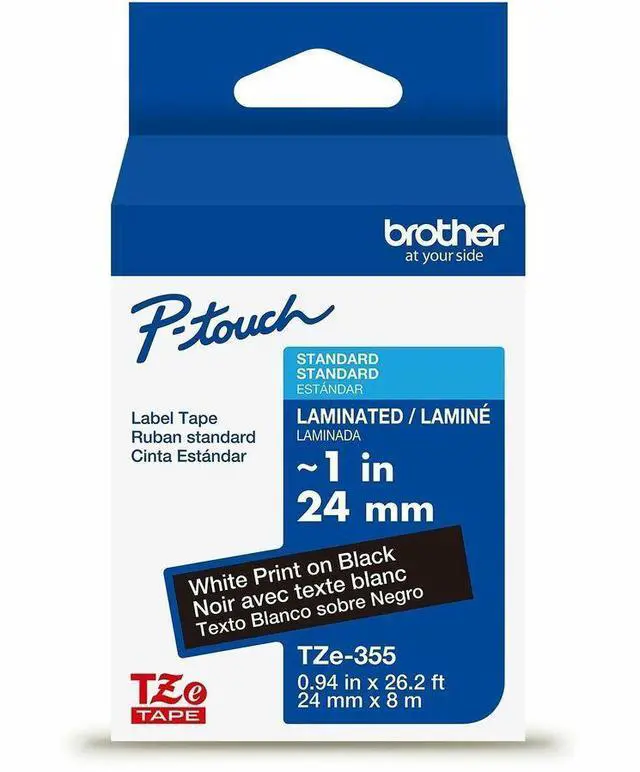Brother Genuine P-touch TZe355 WHT on BK Label Tape Laminated 24mmX8m