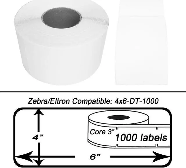 We use the highest premium, wood free quality Fasson paper with our new 4" x 6" Zebra 3" core. The Fasson brand, a registered trademark of Avery Dennison Corporation, meets the highest standards of paper and print quality in the market today. Direct Thermal 4" x 6" Labels (3" Core) for Zebra/Eltron™, Datamax™, Intermac™, SATO™ and Fargo™ Thermal Printers -- BPA Free! HouseLabels high quality, direct thermal labels are commonly used with, but not limited to, Datamax™, Intermec™, SATO™, Fargo™ and ZebraEltron™ thermal desktop printers. These labels are compatible with any direct thermal label printer with a transmissive label sensor. Commonly used for shipping and Endicia applications, uses can also include printing badges, address labels, barcodes, file folder labels, and other general purpose labels/tags. Excellent for applications requiring multiple contact scans without image smearing. Zebra offers paper and synthetic as media options for direct thermal printing. When it comes to paper, Zebra offers many qualities, i.e., Z-Perform, Z-Select, IQ Color and Specialty Media. Our paper matches well with Zebra's Z-Perform product. Remember, not all papers are equal when making your supplier selections ... please ask for their specifications and compare to Z-Perform 2000D before making your selection. Recommended for printing applications up to 8 inches per second (based on printer used) NOTE: These direct thermal labels are for use in desktop printers that do NOT use a thermal ribbon.