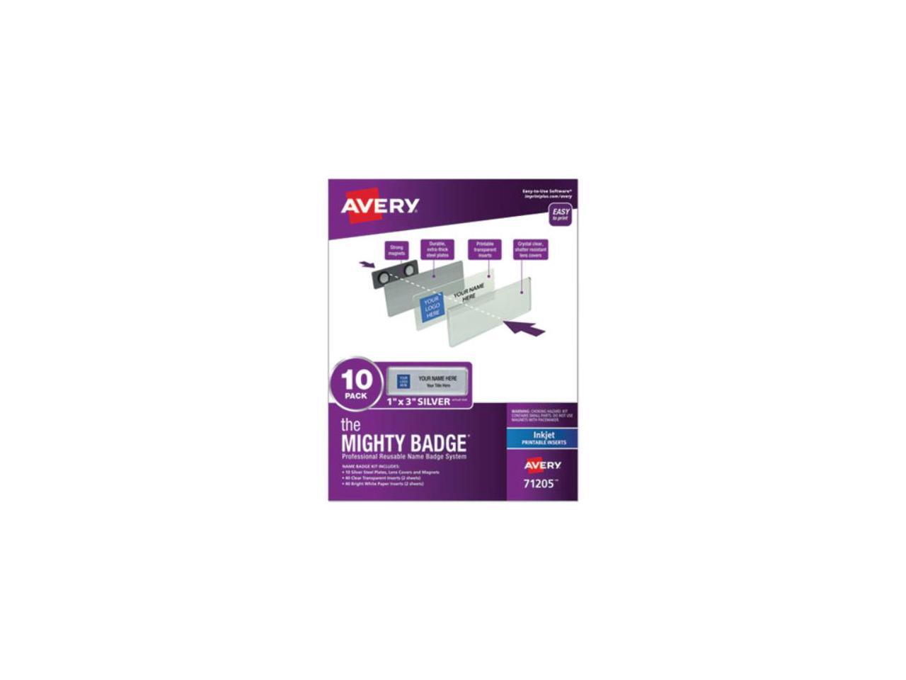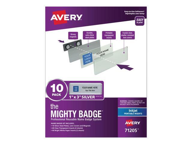 The Mighty Badge 1x3 Silver, 10 Reusable Name Tags 80 Inkjet Inserts