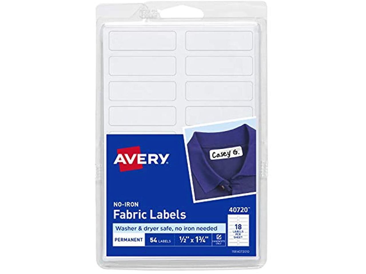 Avery No-Iron Fabric Labels, Washer & Dryer Safe, 1/2" x 1-3/4", 54 Labels