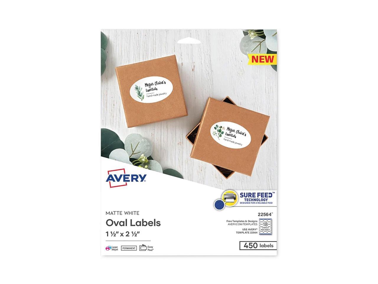Avery Printable Blank Oval Labels, 1.5" x 2.5", Matte White, 450 Customizable Labels (22564)