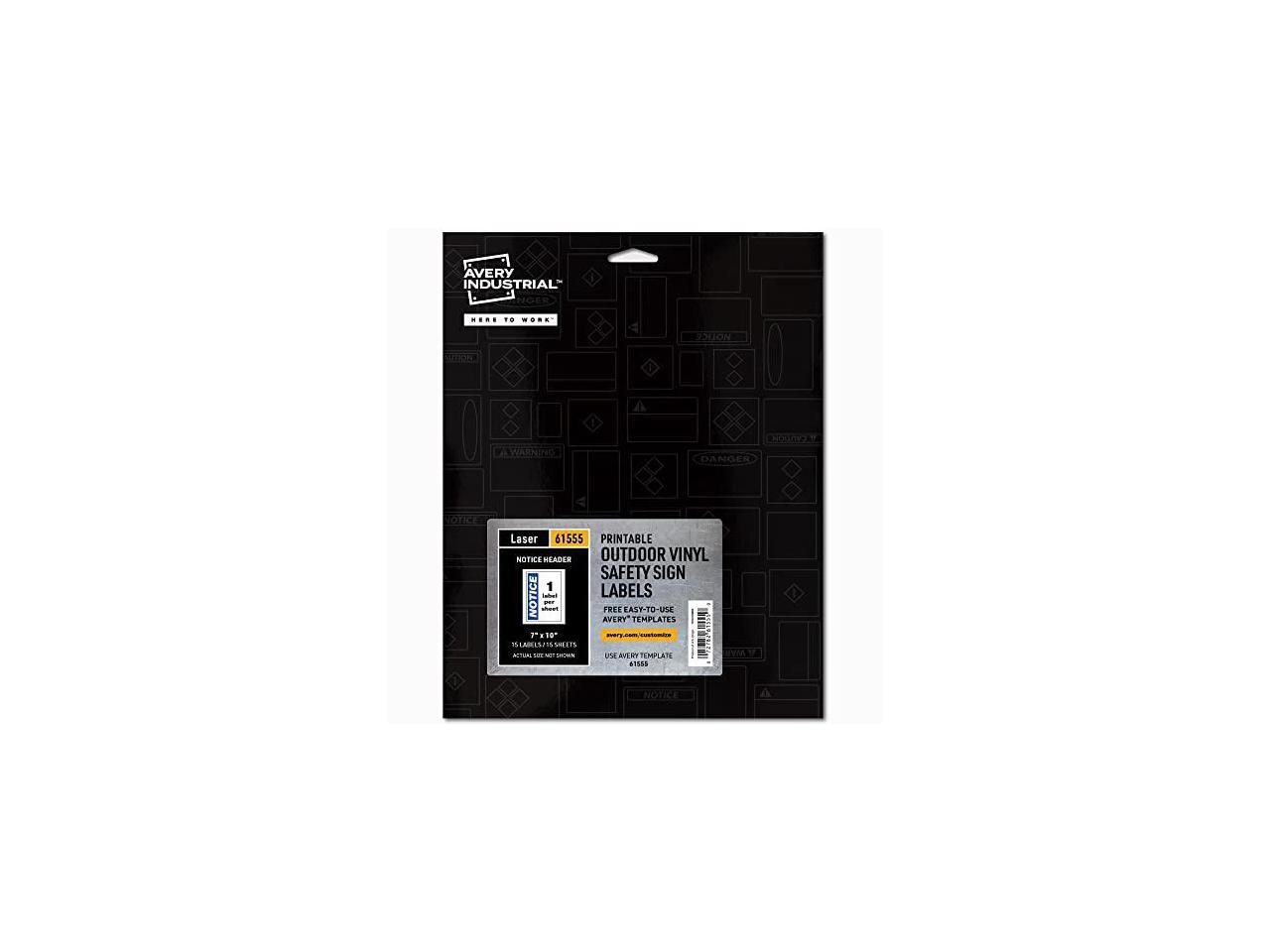 Avery Industrial Adhesive Vinyl Signs, 15ct, 7" x 10", Durable for Outdoors, Laser Printable, Notice Header (61555)
