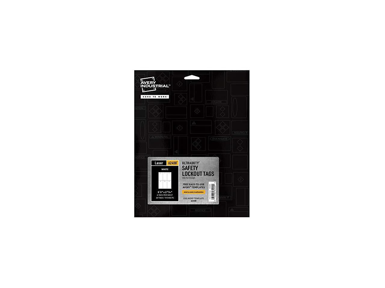 Avery UltraDuty Printable Lock Out Tag Out Blank White Hang Tags, 50lb Pull-Strength for Safety & LOTO, 60ct, 5.5" x 2.83" (62400)