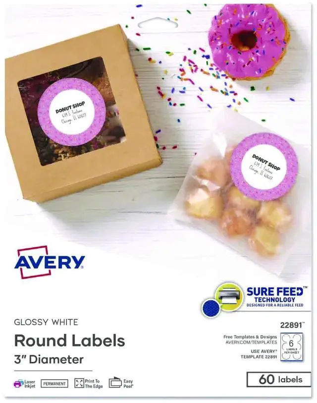 Sure Feed Glossy Labels 3" dia White 8 Labels/Sheet 10 Sheets Pack 22891