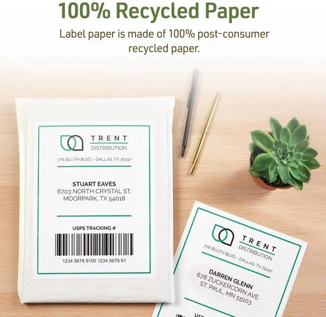 EcoFriendly Recycled Shipping Labels Inkjet/Laser 5.5 x 8.5 White 2/Sheet 10 Sheets/Pack 48808