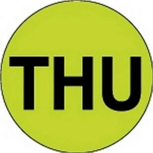 2" Diameter "THU" Day of the Week Circle Labels (500 per Roll)