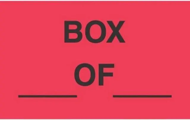 Labels Measure: 1-3/8" x 2" ( 1.375" x 2"), 500 Labels per Roll, Label Color: Fluorescent Red / Black, Paper Label Stock On Silicone Coated Release Paper, Made in USA, Labels Ship in 2-3 Days