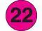 Labels Measure: 3" diameter, 500 Labels per Roll, Label Color: FLR Pink with Black "22", Paper Label Stock On Silicone Coated Release Paper, Made in USA, Labels Ship in 2-3 Days