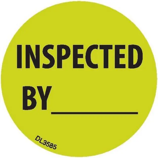 Labels Measure: 2" diameter, 500 Labels per Roll, Label Color: FLR Green/Black, "INSPECTED BY____", Paper Label Stock On Silicone Coated Release Paper, Made in USA, Labels Ship in 2-3 Days