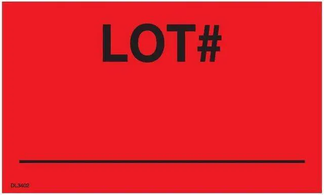 Labels Measure: 3" x 5", 500 Labels per Roll, Label Color: FLR Red/Black, "LOT #", Paper Label Stock On Silicone Coated Release Paper, Made in USA, Labels Ship in 2-3 Days