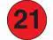 Labels Measure: 2" diameter, 500 Labels per Roll, Label Color: FLR Red with Black "21", Paper Label Stock On Silicone Coated Release Paper, Made in USA, Labels Ship in 2-3 Days