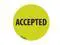 Labels Measure: 2" diameter, 500 Labels per Roll, Label Color: FLR Green/Black, "ACCEPTED", Paper Label Stock On Silicone Coated Release Paper, Made in USA, Labels Ship in 2-3 Days