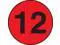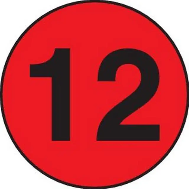 Labels Measure: 1" diameter, 500 Labels per Roll, Label Color: FLR Red with Black "12", Paper Label Stock On Silicone Coated Release Paper, Made in USA, Labels Ship in 2-3 Days