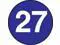 Labels Measure: 3" diameter, 500 Labels per Roll, Label Color: Blue with White "27", Paper Label Stock On Silicone Coated Release Paper, Made in USA, Labels Ship in 2-3 Days