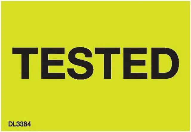 Labels Measure: 1-3/8" x 2", 500 Labels per Roll, Label Color: FLR Green/Black, "TESTED", Paper Label Stock On Silicone Coated Release Paper, Made in USA, Labels Ship in 2-3 Days