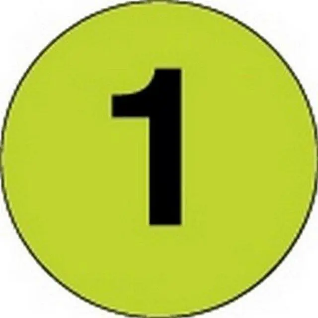 Labels Measure: 4" Diameter, 500 Labels per Roll, Label Color: Fluorescent Green / Black, Paper Label Stock On Silicone Coated Release Paper, Made in USA, Labels Ship in 2-3 Days