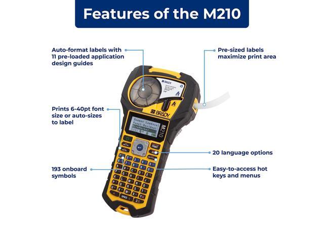 Brady M210 Portable Label Printer Kit - Thermal Transfer - 0.393 in/s - Monochrome - 203 dpi - 16MB Memory - Yellow/Black M210-KIT