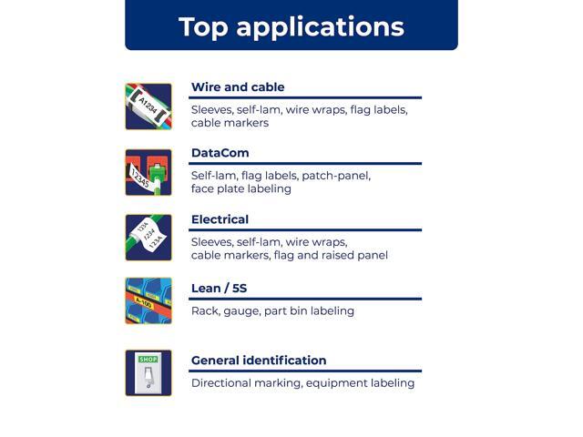 • Printer creates multi-line labels for clear identification of wires, panels, circuit boards and other industrial items