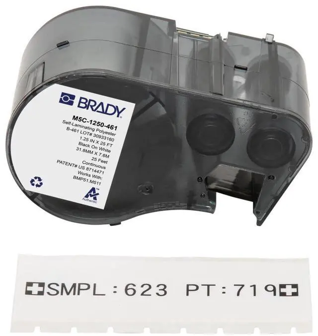 Brady Self-Laminating Polyester Label Tape Label Printer BMP51 Black on White