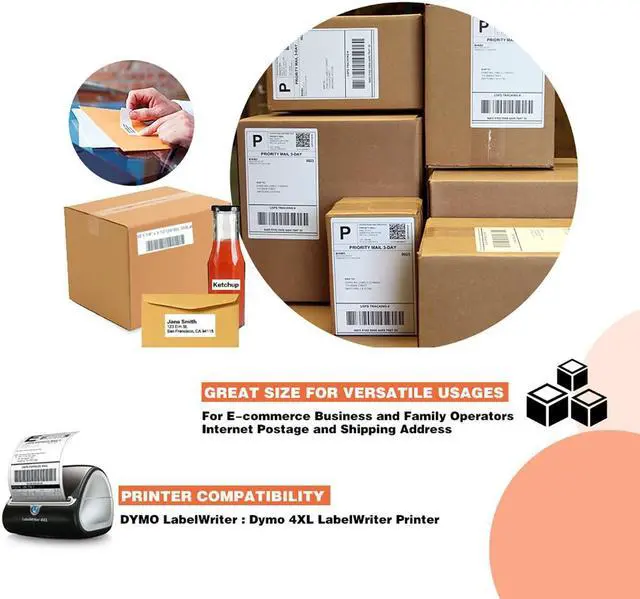 Compatible DYMO 1744907 Address Shipping Barcodes Postal Multipurpose Extra Large Label BPA Free