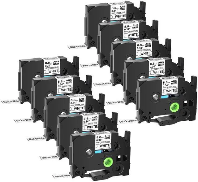 GREENCYCLE 10 Pack Compatible for Brother P-touch HSe-221 HSe221 HS-221 HS221 8.8mm 0.34'' x 1.5m Black on White Heat Shrink Tubes for Wires Cables