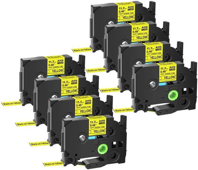 GREENCYCLE 8 Pack Compatible for Brother P-touch HSe-231 HSE631 HS-231 HS231 11.7mm 0.46'' x 1.5m Black on Yellow Heat Shrink Tubes for Wires Cables
